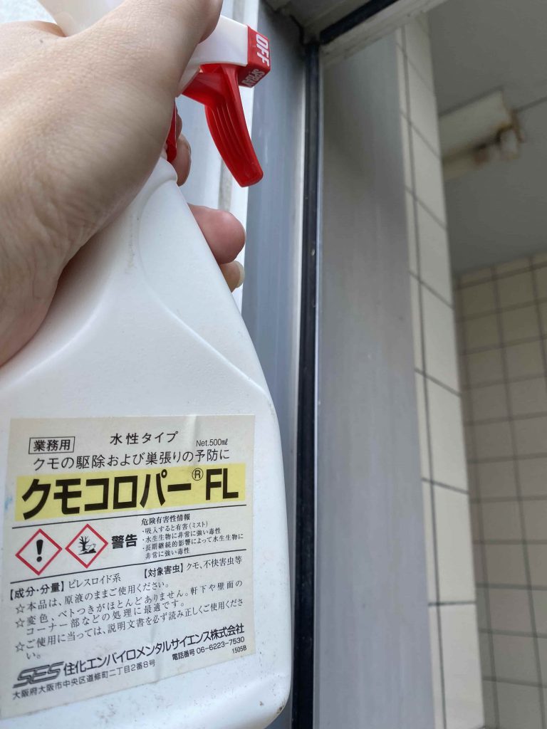 そこで定期的に蜘蛛の忌避剤を散布しています。結果2年間で0にはならないですが7割くらいは減少したのではないでしょうか。